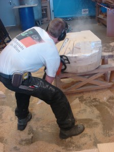 Le Coussin est actuellement en cours de réalisation. Ce sont des Compagnons du Devoir qui ont été sollicités pour la fabrication des aiguilles et du support de bois. L’oeuvre sera présentée en juin prochain, au Cryptoportique de Reims, en vis à vis de chefs-d’oeuvres de Compagnons à l’occasion du 800 ème anniversaire de la Cathédrale.
